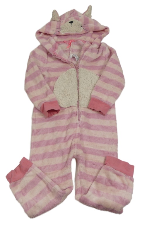 Svetloružová pruhovaná chlpatá kombinéza s kapucí - mačka Next