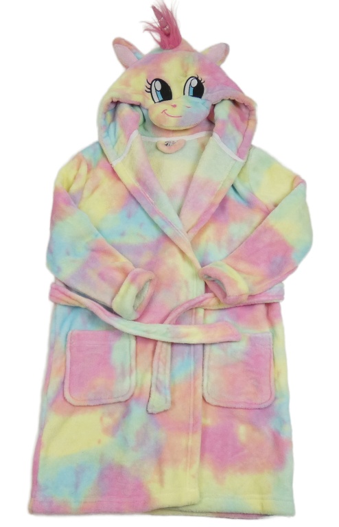 Farebný batikovaný chlpatý župan s kapucí - jednorožec
