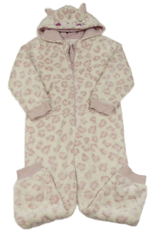 • Smetanovo-svetloružová vzorovaná plyšová kombinéza so srdiečkami a kapucí - mačička s flitrami Nutmeg
