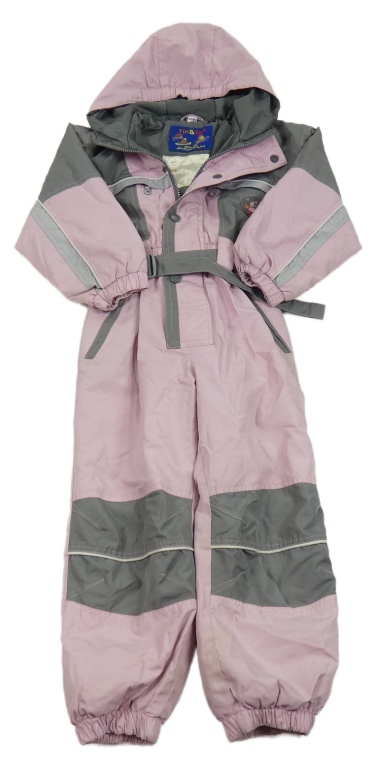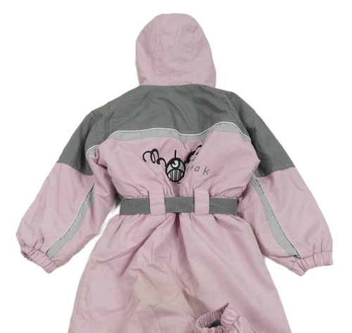 Sivo-ružová šušťáková zimná funkčná kombinéza s nášivkou a kapucňou Tik&Tak