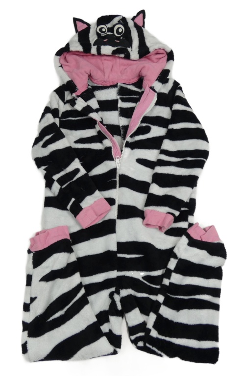 Čierno-bielo-ružová plyšová kombinéza s kapucňou s čumáčkem George
