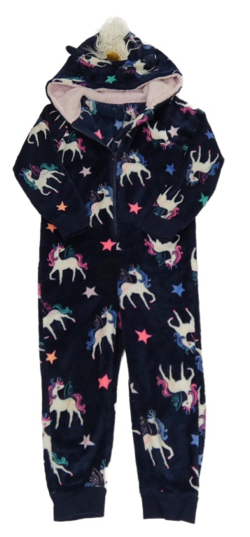 Tmavomodrá chlpatá kombinéza s jednorožcami a kapucňou Matalan