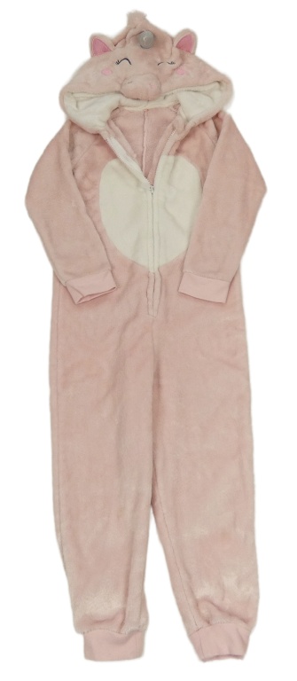 Svetloružová -biela trblietavá plyšová kombinéza s kapucí - jednorožec George