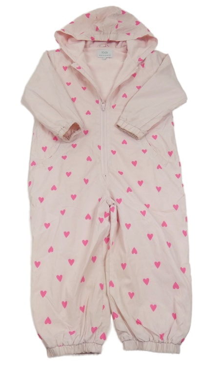 Svetloružová šušťáková jesenná kombinéza so srdiečkami a kapucňou