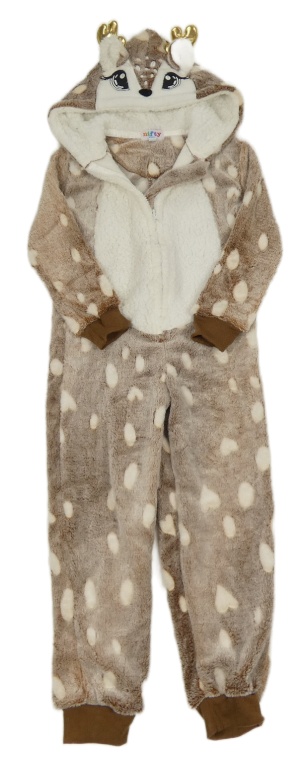 Hnedo-biela vzorovaná chlpatá kombinéza s kapucí - sob