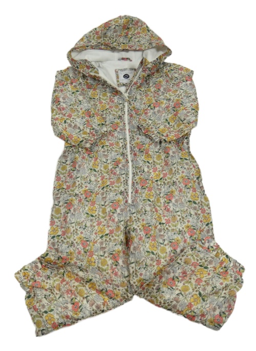 Béžová kvetovaná šušťáková lehce zateplená kombinéza s králikmi a kapucňou Tu