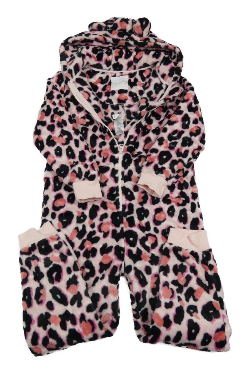 Svetloružová -čierno-ružová vzorovaná chlpatá kombinéza s kapucňou Next