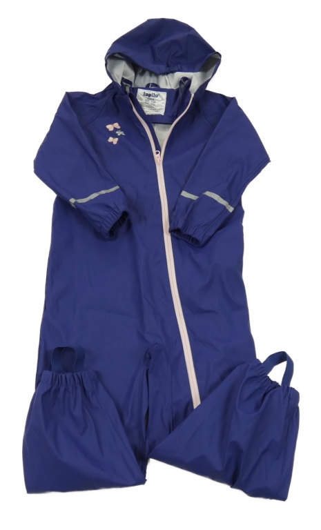 Nové - Tmavomodrá vodeodolná kombinéza s motýly a kapucňou Lupilu