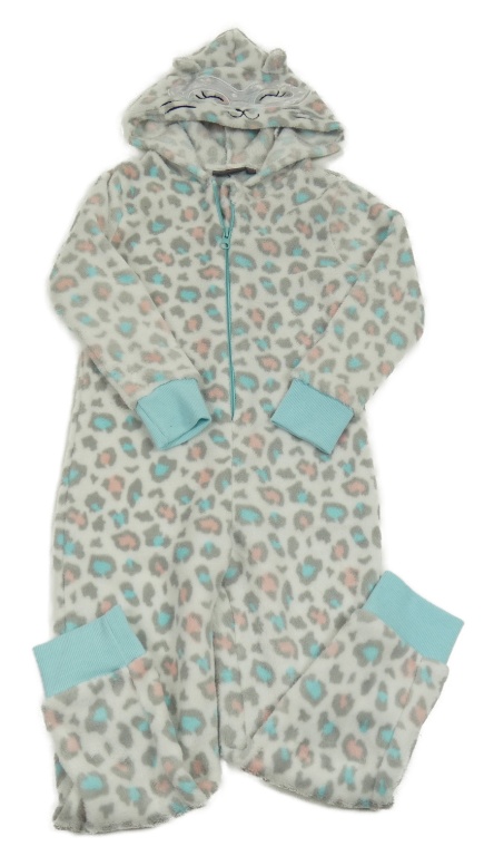 Bielo-farebná vzorovaná chlpatá kombinéza s kapucňou