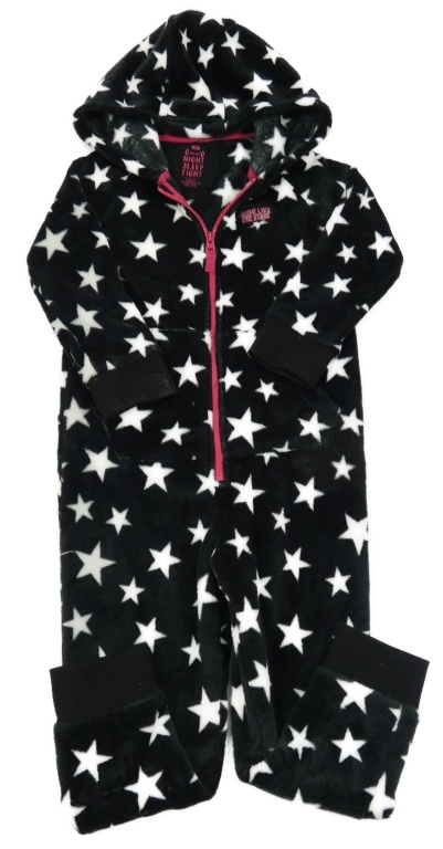 Čierna chlpatá kombinéza s hviezdami a kapucňou
