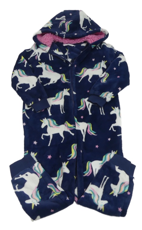 Tmavomodrá chlpatá kombinéza s jednorožcami a kapucňou M&S