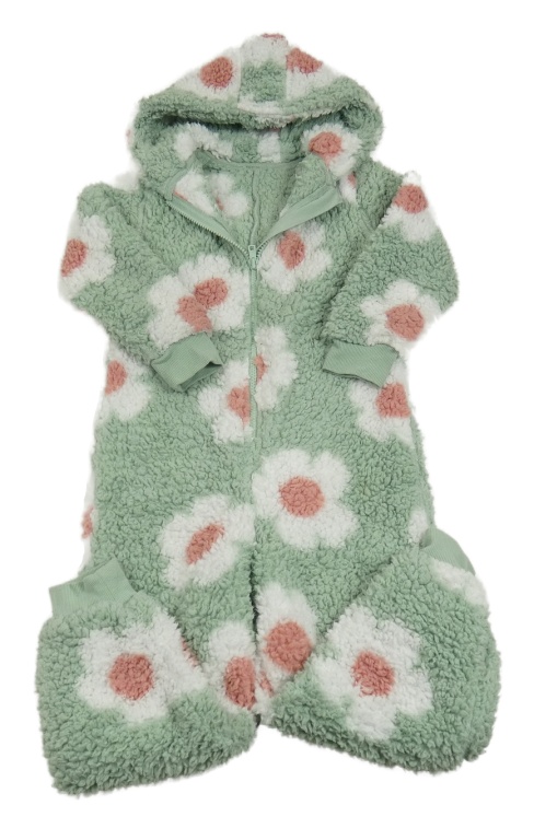 Zeleno-biela huňatá kvetovaná kombinéza s kapucňou George