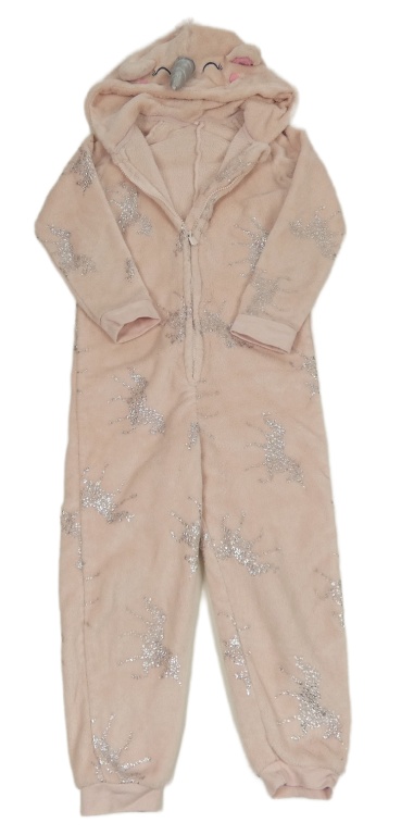 Svetloružová chlpatá kombinéza s jednorožcami a kapucňou George