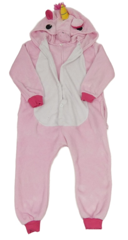 Svetloružová -biela chlpatá kombinéza s kapucí - jednorožec