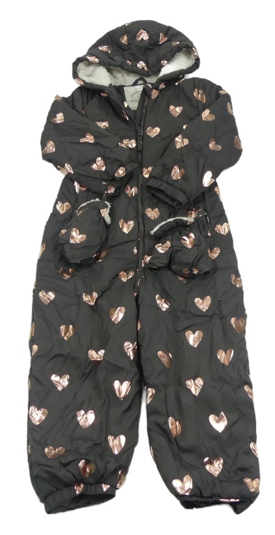 Tmavosivá šušťáková zimná kombinéza so srdiečkami a kapucí + rukavice George