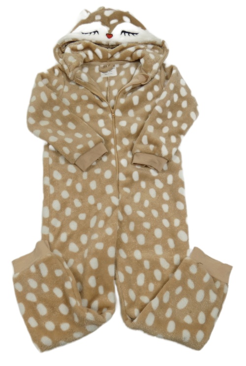 Hnedo-biela vzorovaná plyšová kombinéza s kapucí - sob Primark
