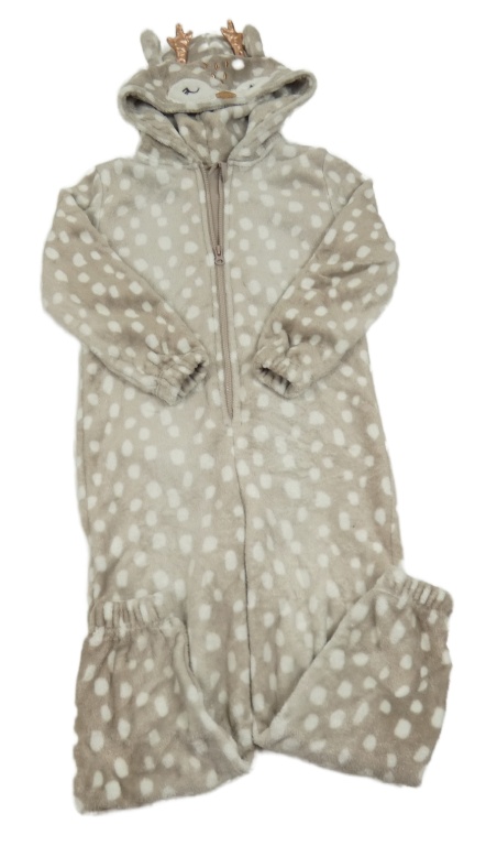 Béžovo-biela bodkovaná á trblietavá plyšová kombinéza s kapucí - sob George