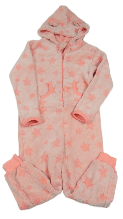 Neónově oranžová chlpatá kombinéza s hviezdami a kapucňou Kiki&Koko