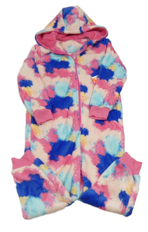 Nové - Ružovo-modro-oranžová vzorovaná chlpatá kombinéza s kapucňou Dunnes stores