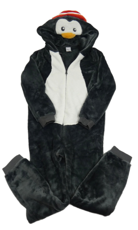 Tmavošedo-biela plyšová kombinéza s kapucí - tučňák