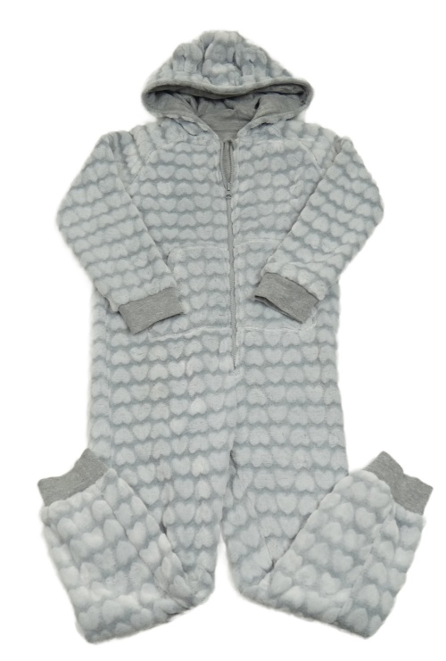 Svetlosivá chlpatá kombinéza so srdiečkami a kapucňou Nutmeg