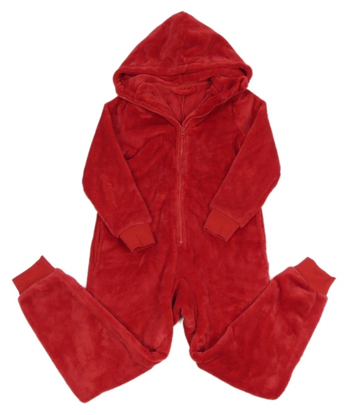 Červená plyšová kombinéza s kapucňou