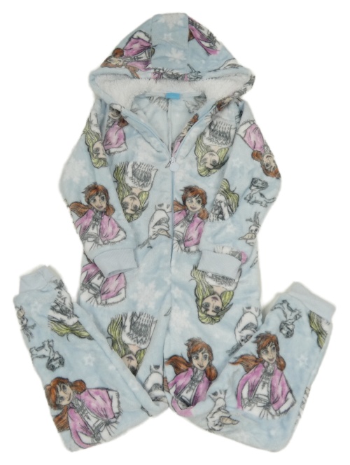 Svetlomodrá chlpatá kombinéza s Frozen a kapucňou Disney