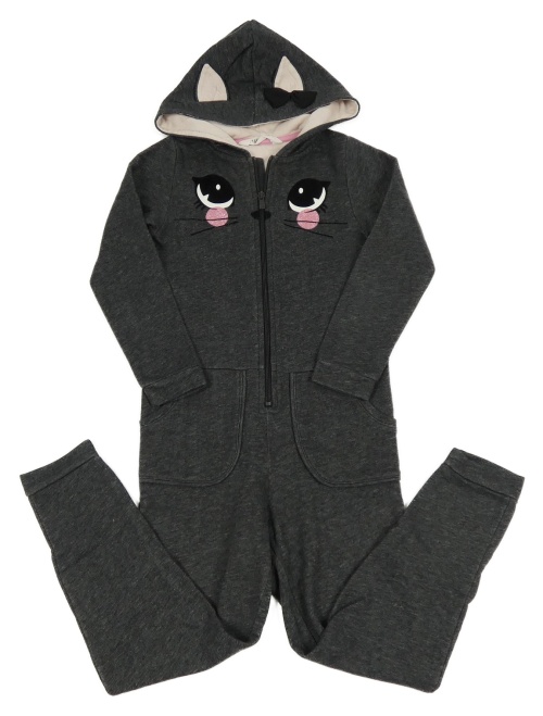 Antracitová melírovaná tepláková kombinéza s ňufáčikom a kapucňou H&M