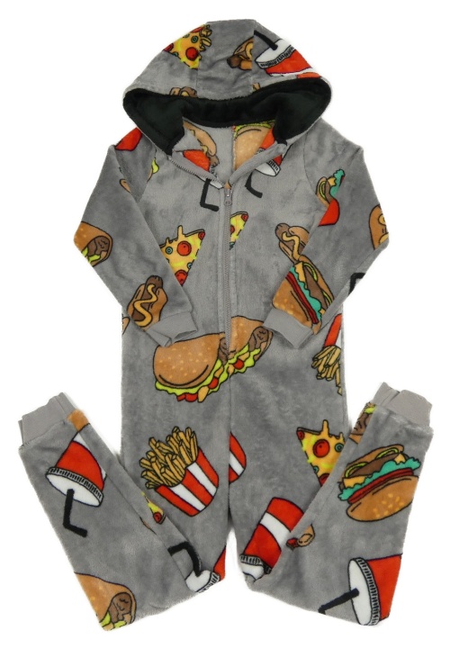 • Sivá melírovaná plyšová kombinéza s jídlem a nápoji a kapucňou Matalan