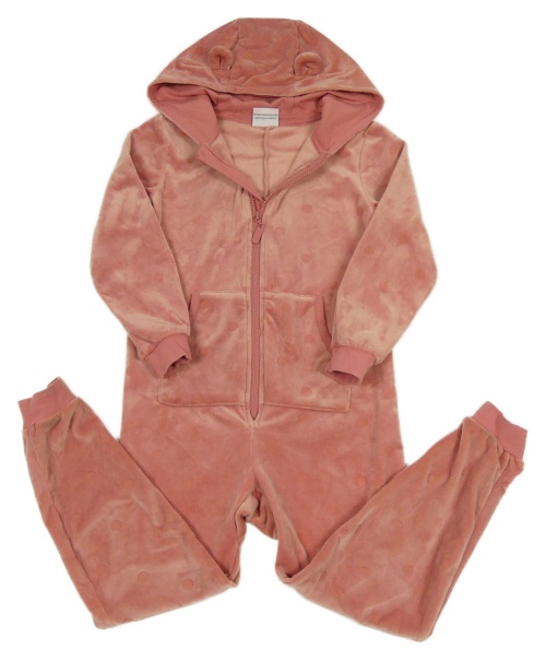 Ružová plyšová kombinéza s bodkami a kapucňou Topolino