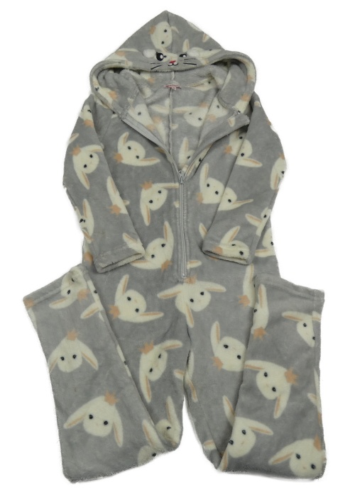 Sivá chlpatá kombinéza s králikmi a kapucňou