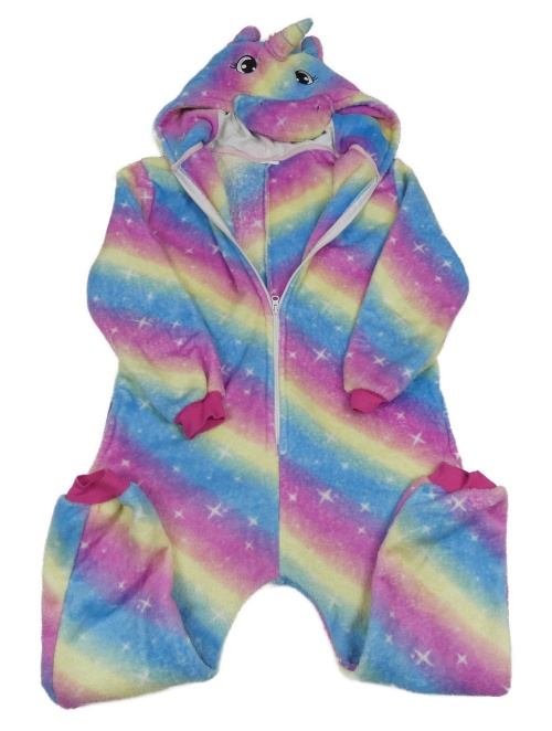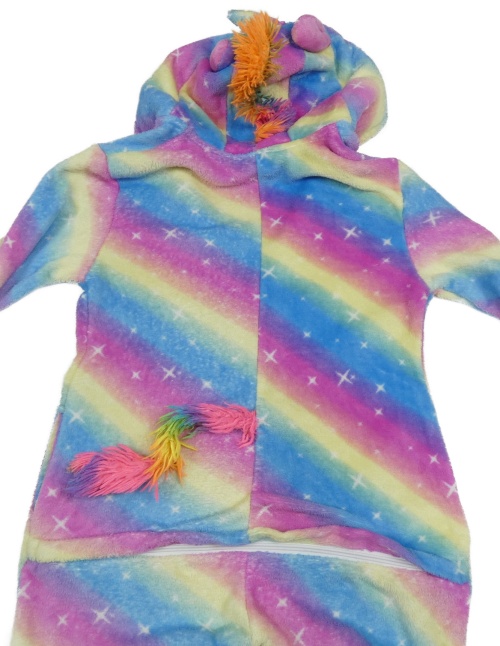 Modro-ružovo-žltá chlpatá kombinéza s kapucí - jednorožec