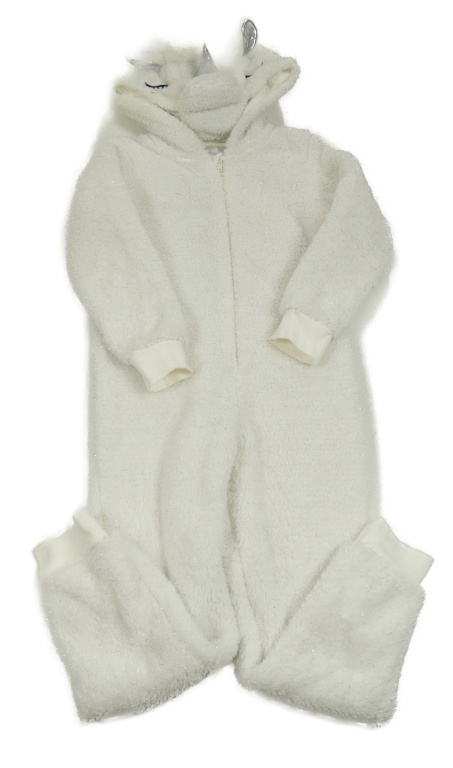 Biela chlpatá trblietavá kombinéza s kapucí - jednorožec C&A