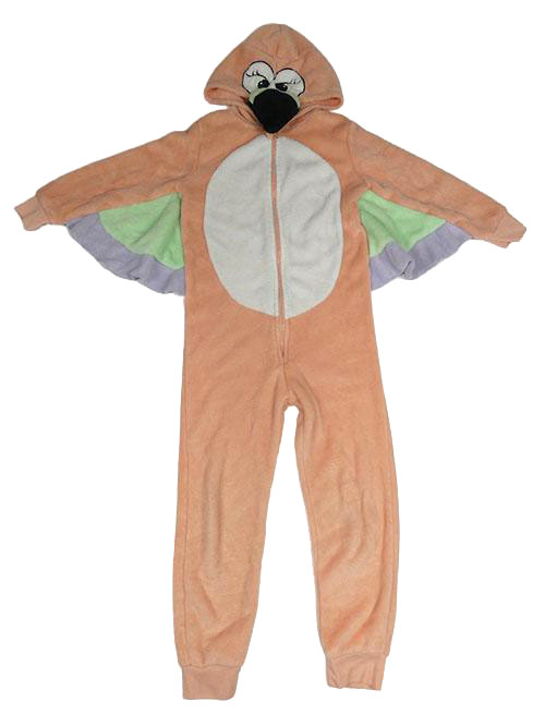 Kockovaným - Meruňkovo-biela chlpatá kombinéza s kapucí - plameňák
