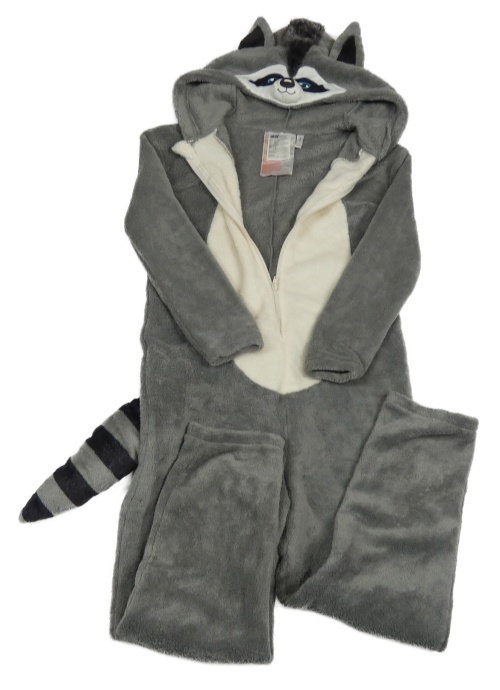 Sivo-biela plyšová kombinéza s kapucí - mýval H&M