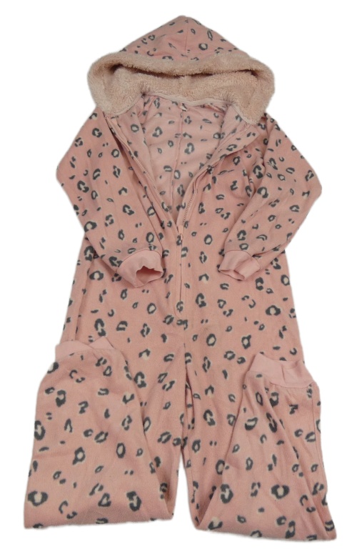 Svetloružová fleecová kombinéza so vzorom a kapucňou George