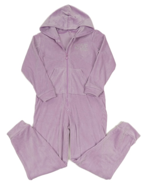 Lila plyšová kombinéza s nápisom a kapucňou George