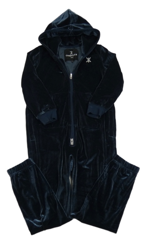 Tmavomodrá zamatová kombinéza s kapucňou One Piece