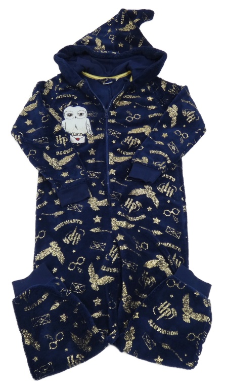 Tmavomodrá plyšová kombinéza s Hedwigou - Harry Potter a kapucňou