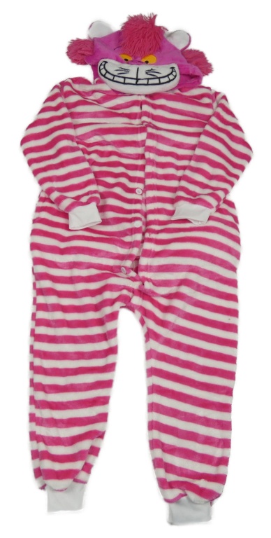 Ružovo-biela pruhovaná plyšová kombinéza s kapucí - kočka Šklíba