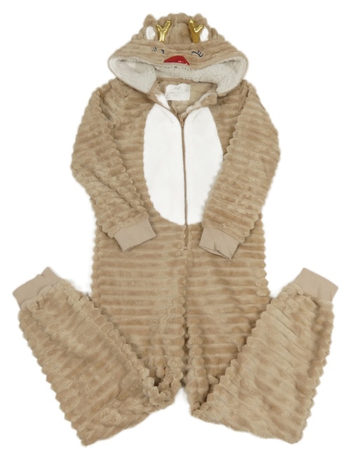 Béžovo-biela chlpatá kombinéza s -kapucí sob F&F