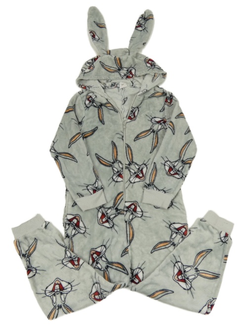 Sivá plyšová kombinéza s Bugs Bunnym a kapucňou