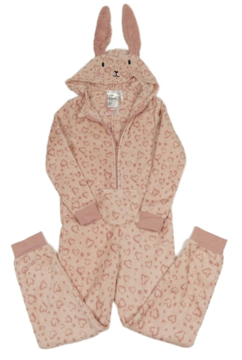 Ružová chlpatá kombinéza so srdiečkami a kapucňou s oušky - králik H&M