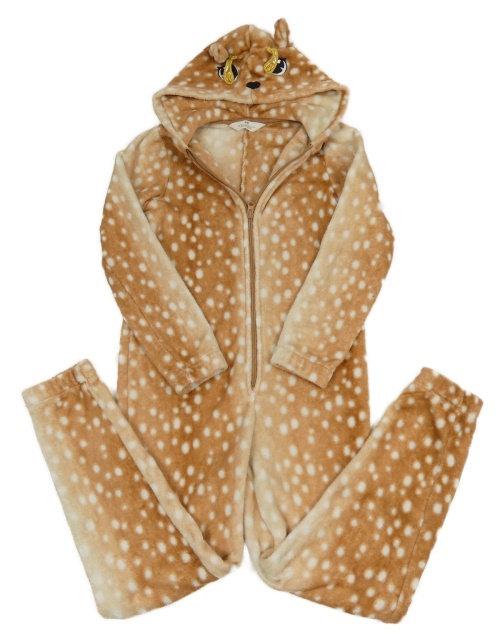 Hnedý plyšová vzorovaná kombinéza s kapucí - sob H&M