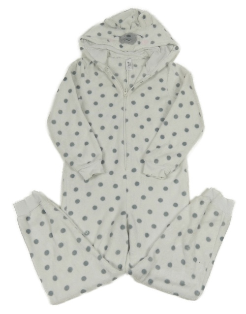 Bielo-šedná bodkovaná á plyšová kombinéza s kapucí - medvedík C&A