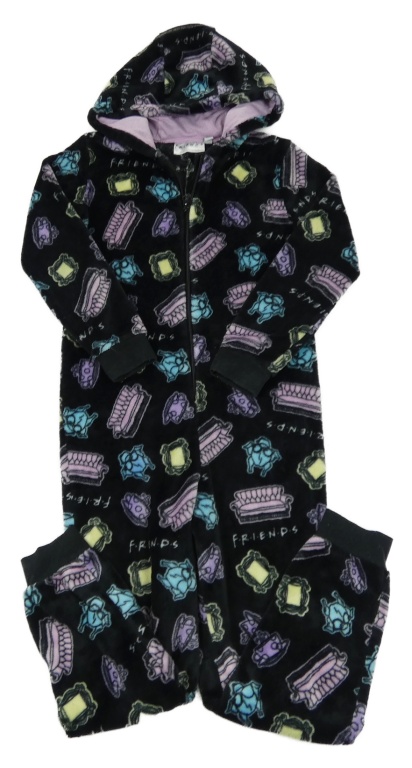 Čierna chlpatá kombinéza s obrázkami a kapucí - Friends