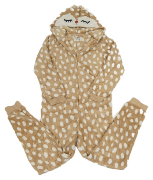 Hnedá chlpatá vzorovaná plyšová kombinéza s kapucí - sob Primark
