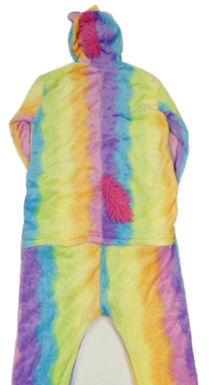 Bielo-farebná chlpatá chlpatá kombinéza s kapucí - jednorožec