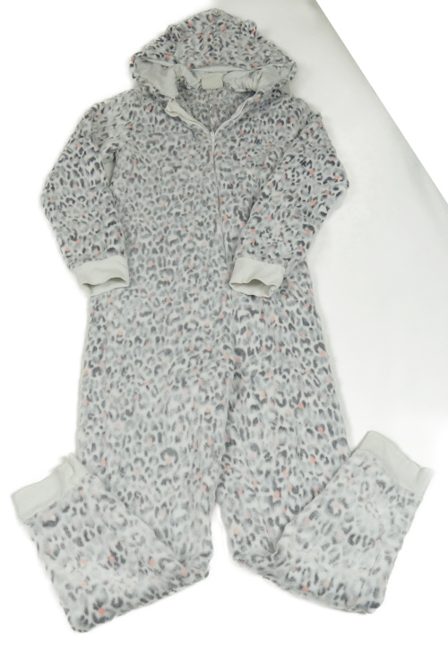 Bielo-sivo-ružová vzorovaná chlpatá kombinéza s kapucňou C&A