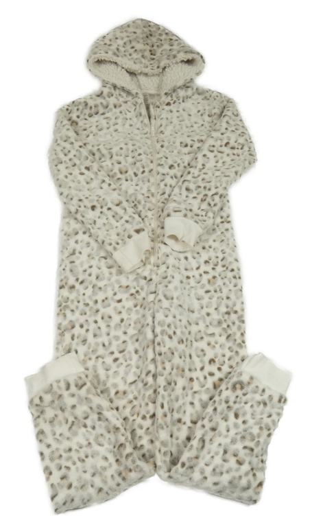 Béžovo-hnedá plyšová kombinéza s leopardím vzorom a kapucňou Peacocks